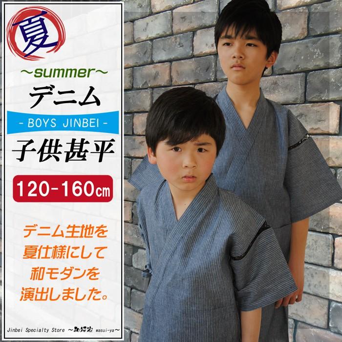甚平 サマー デニム 子供 甚平 7分丈パンツ キッズ じんべい 1色 綿100 1 130 140 150 160cm 対応 こども 男の子 男児 ボーイズ ジュニア Jic 1033 和粋家 甚平 作務衣メーカー直販店 通販 Yahoo ショッピング